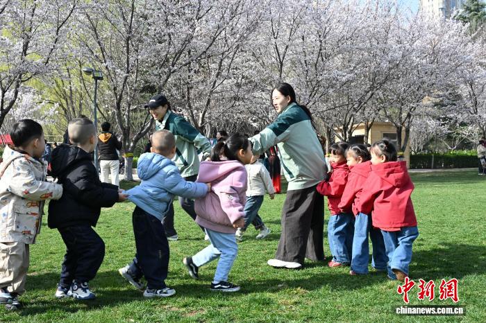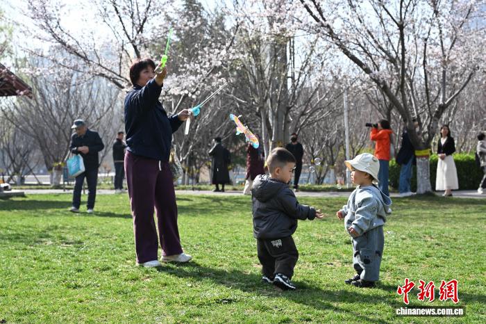 图为小同伙正在家人随同停正在草坪上顽耍。付杉 摄